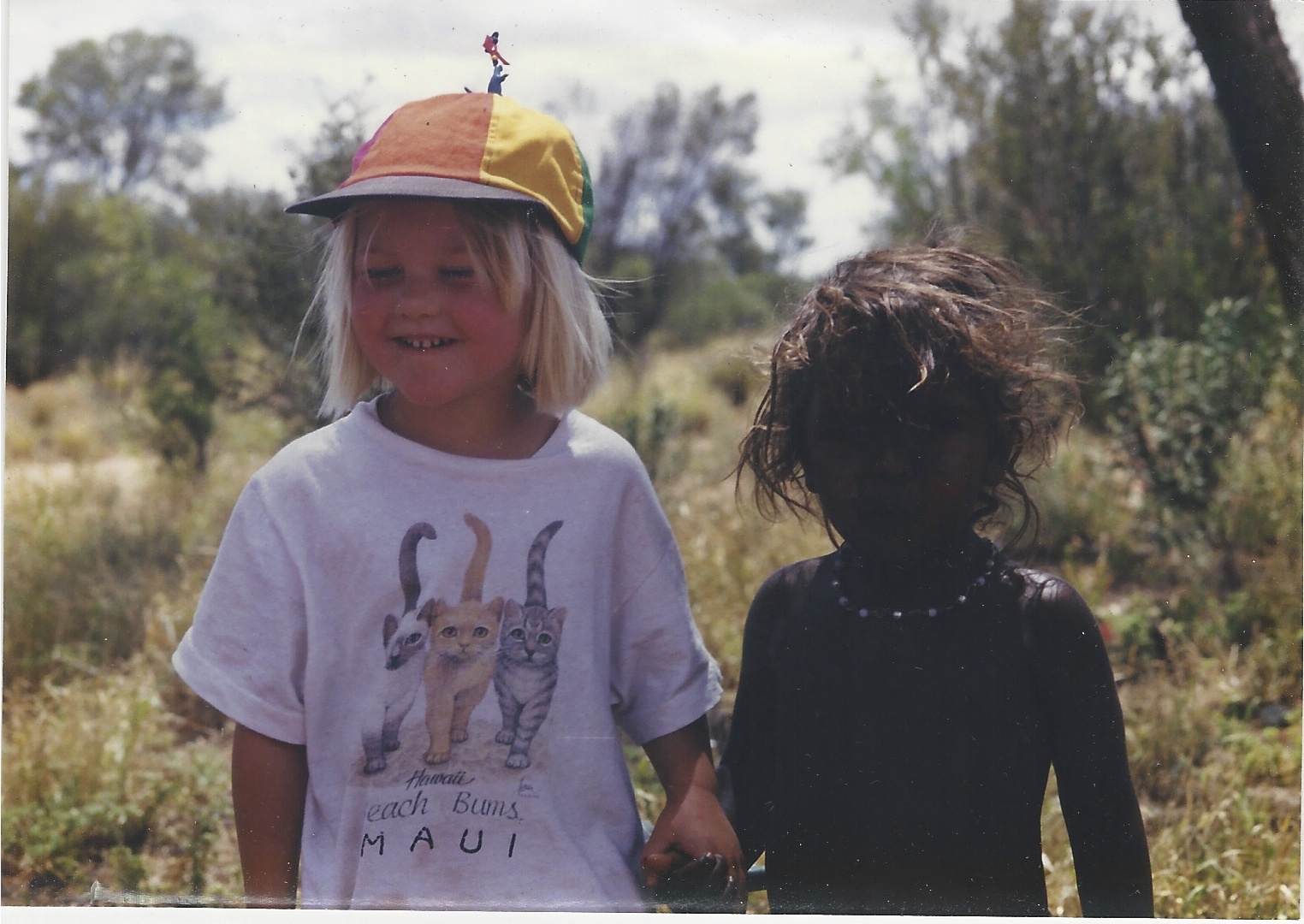 I love this photo of little Sophie, holding hands with an Aboriginal girl in Australia. Not only am I wearing the most ridiculous outfit (my mom let me dress myself as a child) but, having no memory or anecdotes to suggest otherwise, I like to think of this as evidence for how children are born nondiscriminatory. While I can’t speak for the other little girl, it appears that I didn’t notice or care about our differences, all I saw was a potential friend to play with, and seized the opportunity.